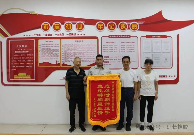 晨光微熹时,延长橡胶全钢硫化工区的生产线开始新一天的运转,便被一份特别的温暖轻轻拥抱——前几天被全钢硫化工区员工高超超救下,现已出院的师傅及家人特地赶来,手中紧握一面鲜红的锦旗。一见到高超超,那位大姐便快步上前紧紧握住他的手,眼眶湿润声音微颤:“高师傅,终于见到你了!要不是您那天出手相助,真不知道会怎样……”话未说完,哽咽已堵住了喉咙。言语间真情流露,在场的人无不动容。