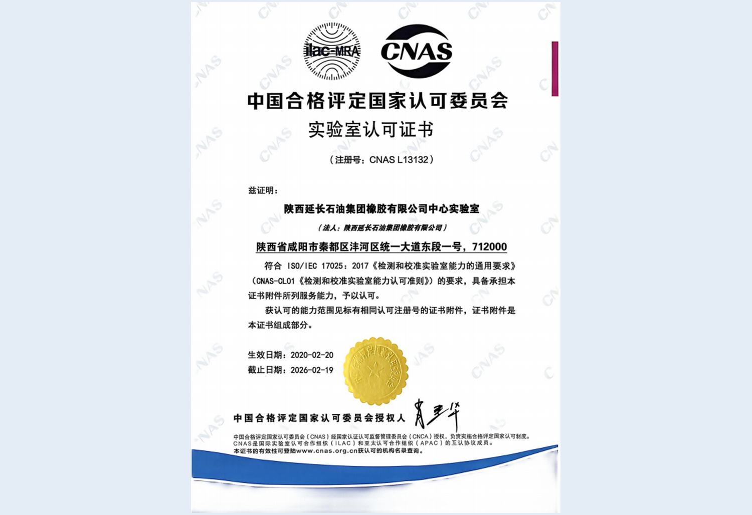 实验室认可证书